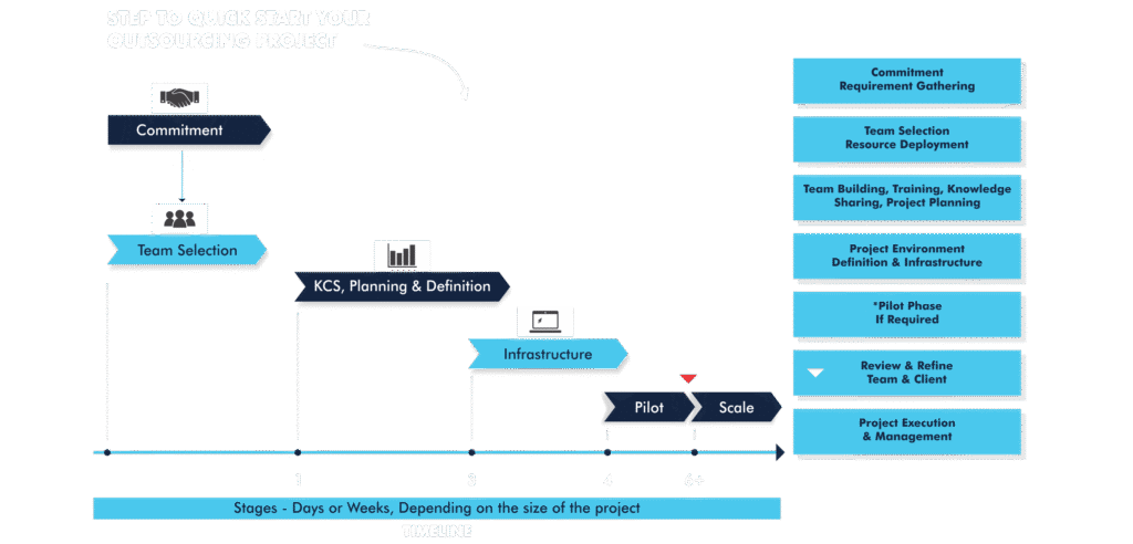 Our unique delivery methods allow us to work with our customers closely, beginning with Pilot to final Milestone of the project. Most of our projects are on Time and Material, where time tracking becomes very important. We use advanced automation & tracking systems to ensure that processing is seamless and on time.